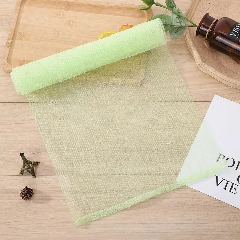 At the core of this bath towel is high-quality Japanese nylon, selected for its unique balance of softness and exfoliating power. Unlike rough, scratchy alternatives that irritate sensitive skin, our nylon fabric features a fine, smooth texture that glides over your body without causing redness or discomfort. It effectively lifts away dead skin cells, dirt, and excess oil from deep within pores—unclogging impurities that regular soap and water often miss. The result? Skin that feels baby-soft, smooth, and noticeably brighter after just one use.